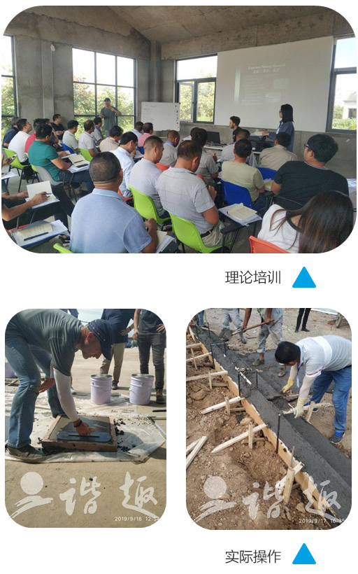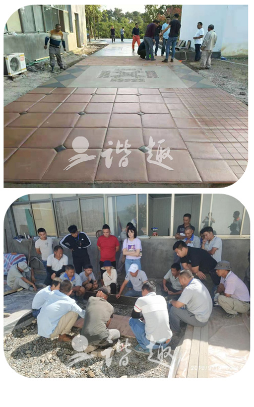 培訓(xùn)采用理論結(jié)合實(shí)際的方法逐步推進(jìn)。理論培訓(xùn)讓所有參加培訓(xùn)的人員了解熟悉彩色混凝土的科學(xué)原理。從最根本的方面了解,這樣可以讓人知其然也可知其所以然,更好的提高施工技術(shù)?,F(xiàn)場實(shí)際操作讓處于一線施工現(xiàn)場的員工了解更多的施工技術(shù),施工方法。改掉以前的一些不正確,效率不高的施工方法。從而達(dá)到更高的施工技藝,為以后的客戶提供更加優(yōu)質(zhì)的服務(wù)。