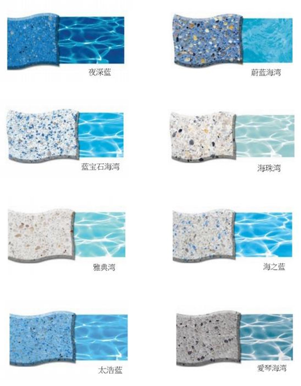 可用于各種色彩及紋理材質(zhì)。不同的色彩及骨料型號(hào)可以良好的滿足(適用于)任何設(shè)計(jì)要求。為泳池的擁有者提供了可替代傳統(tǒng)白色涂料的、非常耐用且極具吸引力的彩色涂料。