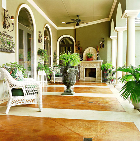 酸著色劑的用途很廣泛,既可單獨完成對混凝土表面的藝術(shù)裝飾,又可與彩色混凝土藝術(shù)地坪搭配使用以滿足更高要求的混凝土裝飾效果。