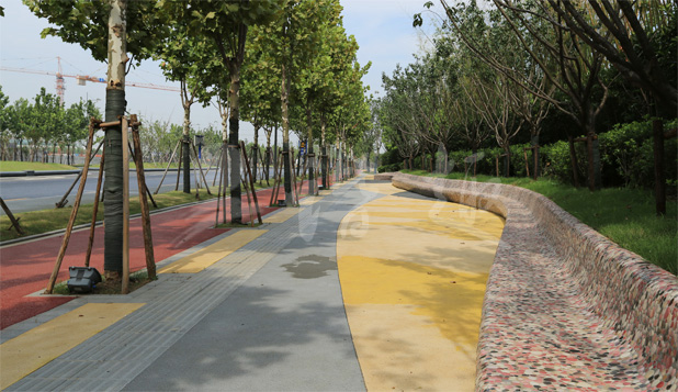 3、裝飾效果,透水地坪擁有色彩優(yōu)化配比方案,能夠配合設(shè)計師獨(dú)特創(chuàng)意,實(shí)現(xiàn)不同環(huán)境和個性所要求的裝飾風(fēng)格。這是一般透水磚很難實(shí)現(xiàn)的。